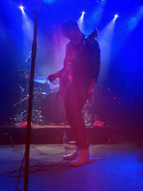 Kuvat Nokia 6600 -laatua... Olen selkeästi liian kiltti tyttö, kun taas kysyin paristakin eri paikasta saako kameraa viedä, ja molemmista sain saman kieltävän vastauksen. Olipahan siinä eturivissä sitten varsin monella kamera mukana, ja omani oli nätisti narikassa! Keikan puolessa välissä alkoi siis lievästi v*tuttaa. Ajattelen nimittäin lähes aina kaikki tällaiset tilanteet kameran linssi läpi, vaikka se sitten häiritsisikin itse tilanteesta nauttimista... Onneksi pääsin harmin yli (buah, sainpahan ainakin settilistan muistoksi), mutta totesin, että en enää ikinä kysy saako kameran viedä, vien vaan. Piste.